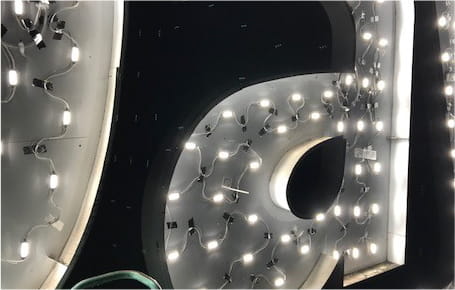 LEDモジュールを箱文字看板に仕込みます。看板と一口に言ってもご要望ごとにさまざまな形の看板作成があります。